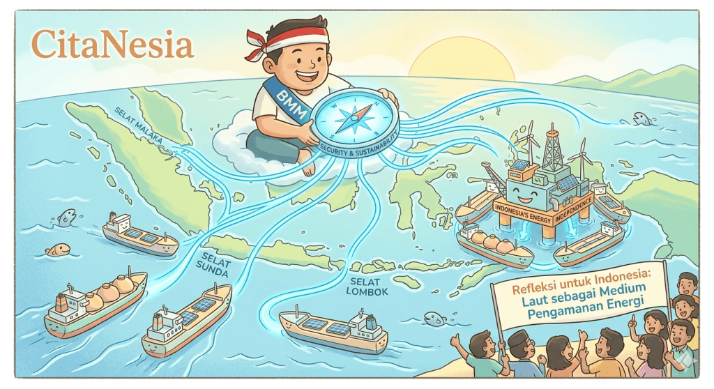 Melalui perspektif BMM (Blue Maritime Mindset), CitaNesia melihat bahwa pengamanan energi tidak dapat dipisahkan dari cara pandang kita terhadap laut. Laut perlu dipahami sebagai ruang hidup yang terintegrasi—yang menghubungkan aspek keamanan, keberlanjutan, dan identitas bangsa.