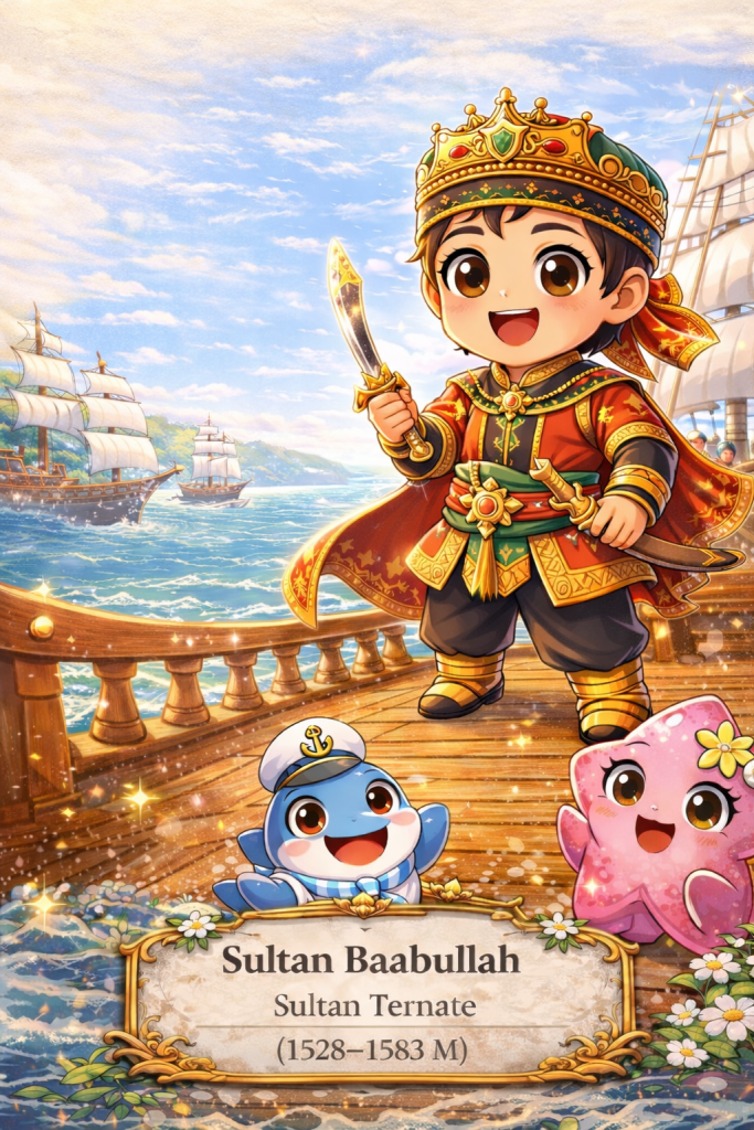 Beliau adalah Sultan Baabullah, Sultan Ternate yang memerintah pada abad ke-16 dan dikenal sebagai sosok pemberani, cerdas, serta memiliki tekad kuat dalam menjaga kedaulatan negerinya.